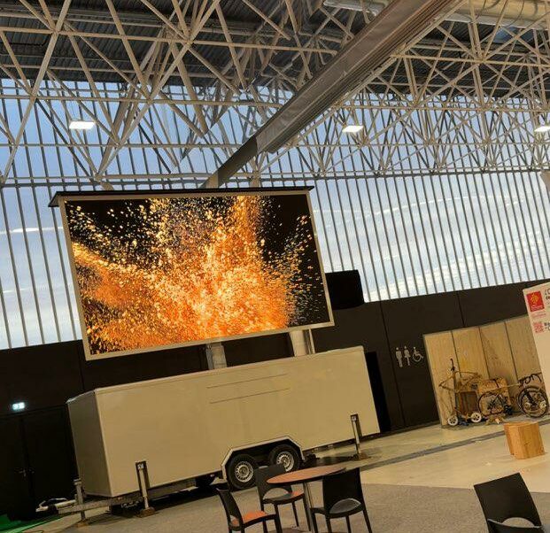 Grâce à sa configuration sur remorque, notre écran de 17m² offre une grande facilité d’installation et une adaptabilité optimale, que ce soit pour des salons, des foires ou tout autre événement professionnel, en intérieur comme en extérieur.